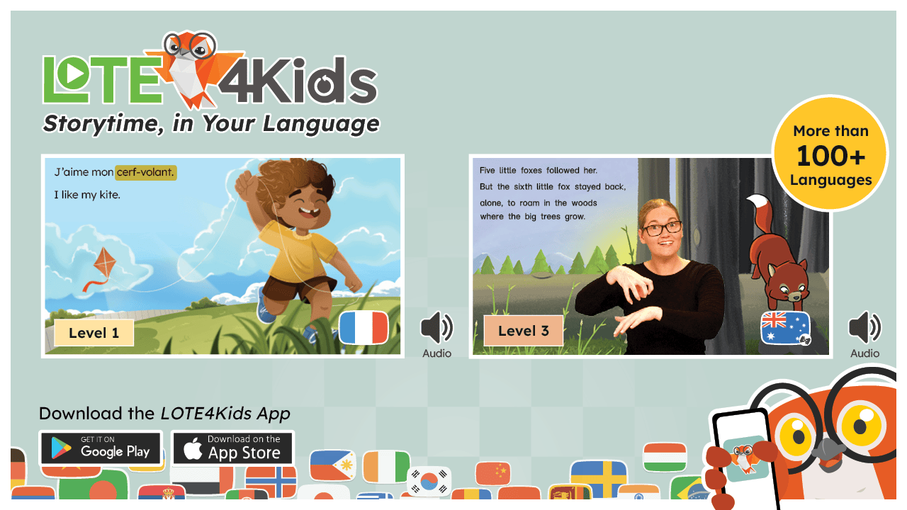 Thousands of titles in 100+ languages, including Mandarin, Japanese, Italian, French, and Auslan, covering the languages Australian schools teach and the communities they serve.